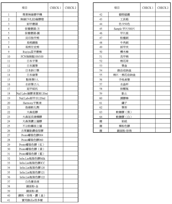 課程材料皆可開業使用,提供清單自行查價、比價!