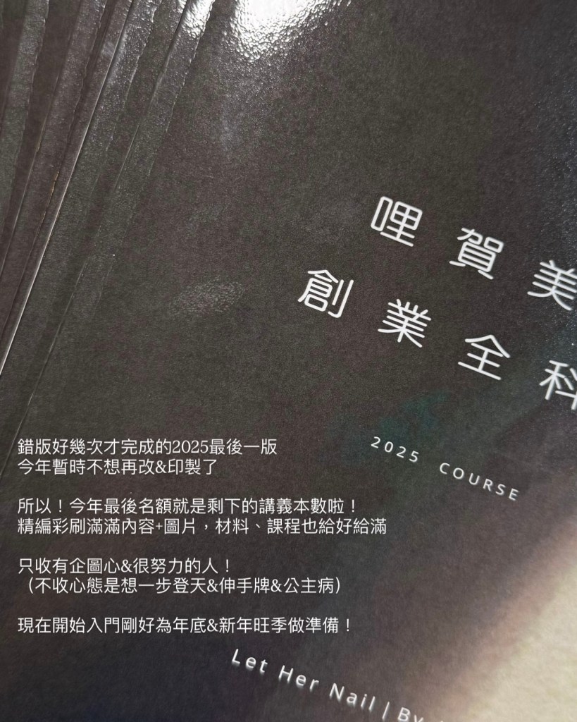 哩賀美甲開了創業全科班~就是為了帶著跟我一樣有想法卻有好多擔憂的哩們實踐夢想~
