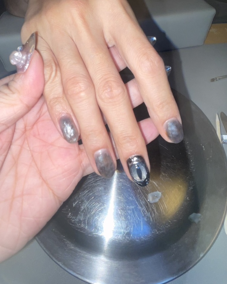 給美甲師姐姐做指甲的同時也只能發呆、欣賞,